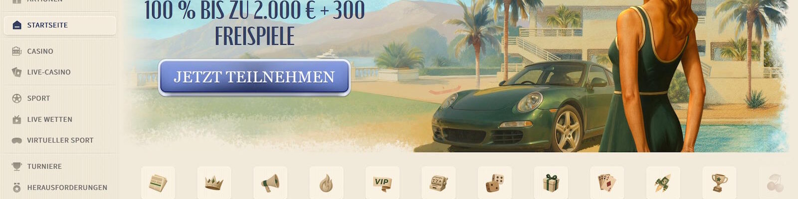 100% Bonus bis 2000 € + 300 Free Spins
